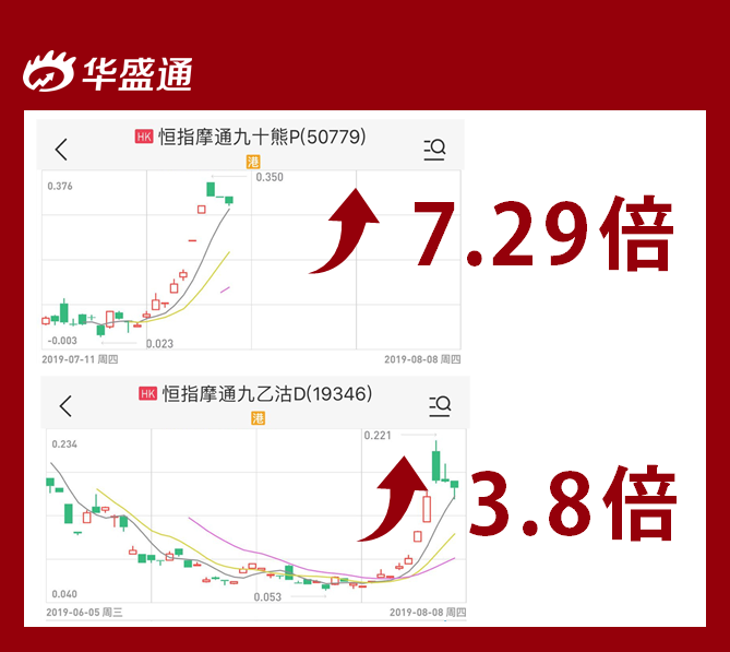 就说最近,2019年的7月26日到8月6日,短短8个交易日,恒生指数一口气跌了2618点,跌幅9%。这么惨烈的行情,竟然有人数钱数到手抽筋。这是怎么回事呢?原来,在这期间,跟恒生指数挂钩的熊证和认沽窝轮都在纷纷暴涨。
