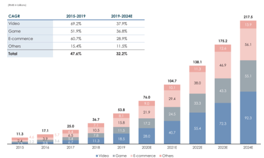细分来看,云服务的高速增长,最重要的增长动力来自互联网。近年来,互联网在视频、游戏等在线娱乐和电子商务领域的消费量显著增长,从而推动云资源的需求增长。机构预计,2019-2024年间,互联网行业的云市场规模或将保持32.2%的年复合增速,从需求端继续保证金山云的业绩增长。