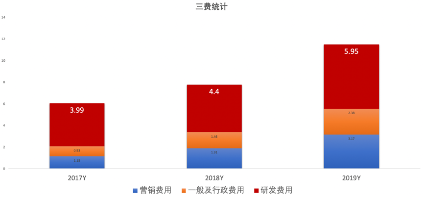 三费方面,研发支出占比重最大,2019年公司研发费用达到5.95亿元,占总费用比重达到21%。