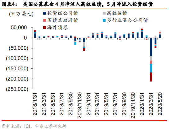 根据以上的数据,我们可以得出结论:反弹由居民、外资、杠杆资金推动,美国本土公募机构在3-5月持续卖出美股,自4月起先后买入大量高收益债与投资级公司债。