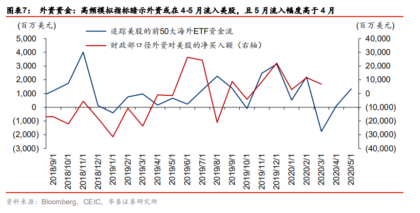 外资4-5月净流入美股,且5月流入加码
