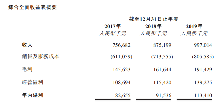 金融街物业从2017年至2019年营收呈现稳定增长的趋势,由2017年度的7.57亿元增长15.7%至2018年度的8.75亿元,并进一步增长13.9%至2019年度的9.97亿元,2年营收总增长31.7%。