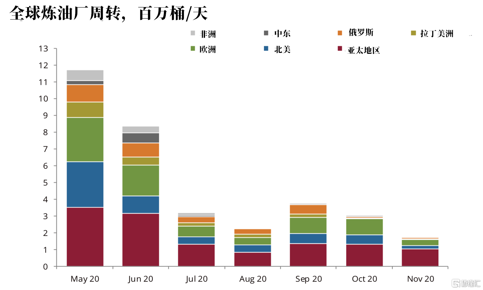 值得注意的是,最近几周,亚洲部分地区的炼油厂的复苏步伐要快于欧美。近期,亚洲炼油厂享受到强劲的本地需求,这令该地区的工厂保持忙碌,而欧洲和美国的复苏则滞后。