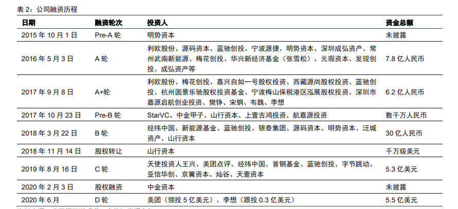 2015 年至今,理想公司已累计完成 9 轮融资,累计融资超过 120 亿元。D 轮融资后,公司估值达 40.5 亿美元,产业投资人包括美团、字节跳动等。截止目前,创始人李想持有公司 25.1%的股权+70.3%的投票权;第二大股东美团及王兴个人持有 23.5%(美团 14.5%,王兴 8.9%)的股权+9.3%的投票权,在上市前的D轮,创始人李想也进行了跟投,表示了自己的看好。