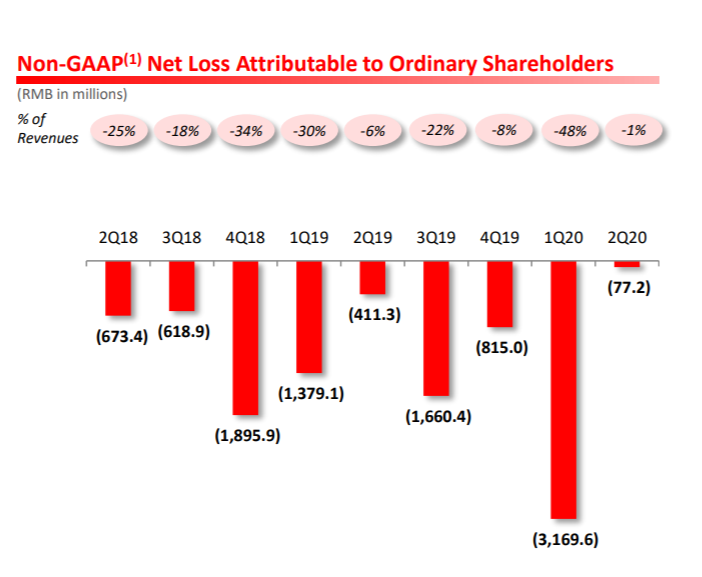 而在第二个季度,拼多多从营收和亏损上其实相比较第一季度已经有了很大的改善。具体而言,营收同比增长67%,达到121.93亿,净亏损收窄到7720万,几乎是有史以来的最低值。