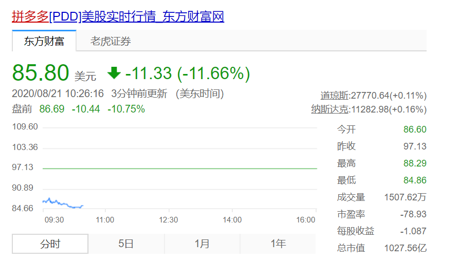 这种情绪反映在股市上就是拼多多股票的跳水。