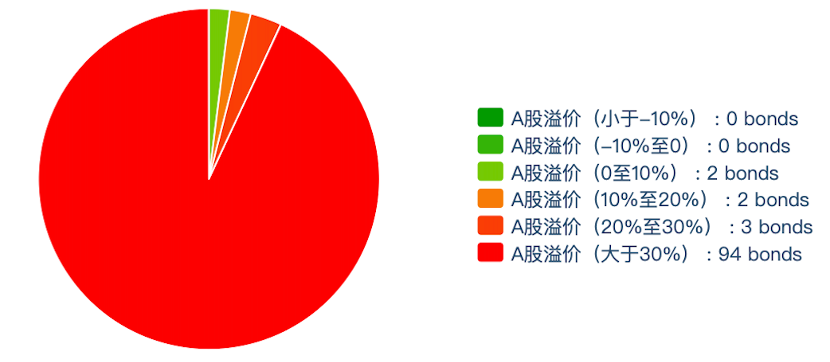 本周共有94只A股溢价超过30%,有5只A股溢价在10%-30%之间。