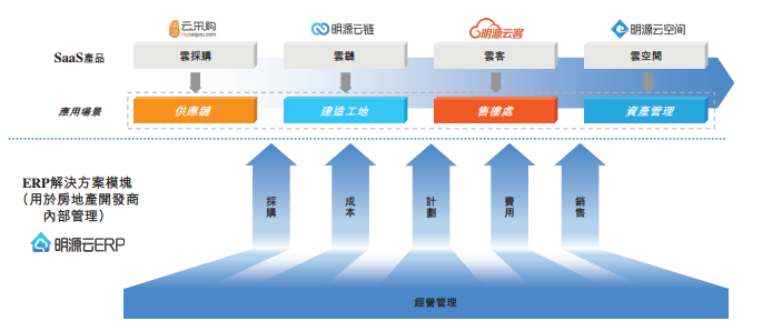 第二个是SaaS产品(软件即服务),可以帮助房地产开发商及其他房地产产业参与者优化其采购、建造、营销及销售、房地产资产管理及其他房地产相关运营的方式。