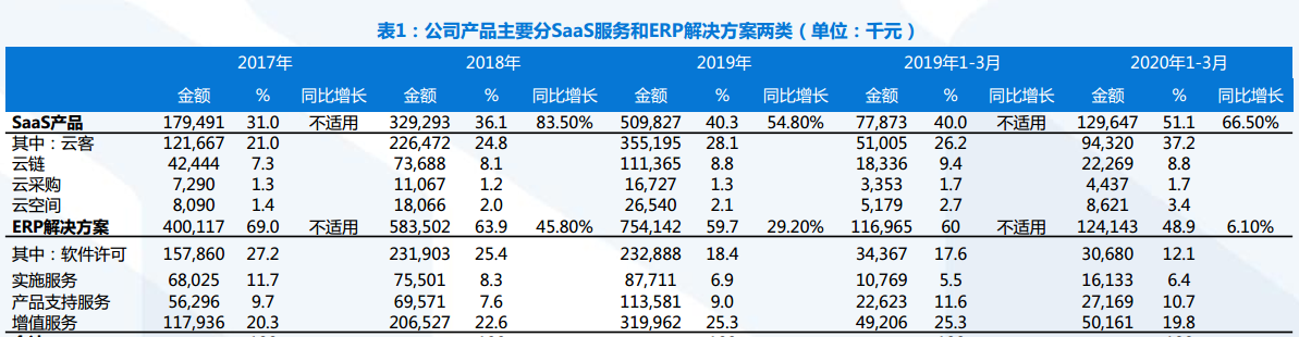 ERP解决方案的收入增长渐趋稳定,而SaaS产品营收始终保持着高速增长的状态,在产品总营收中的占比逐年上升。