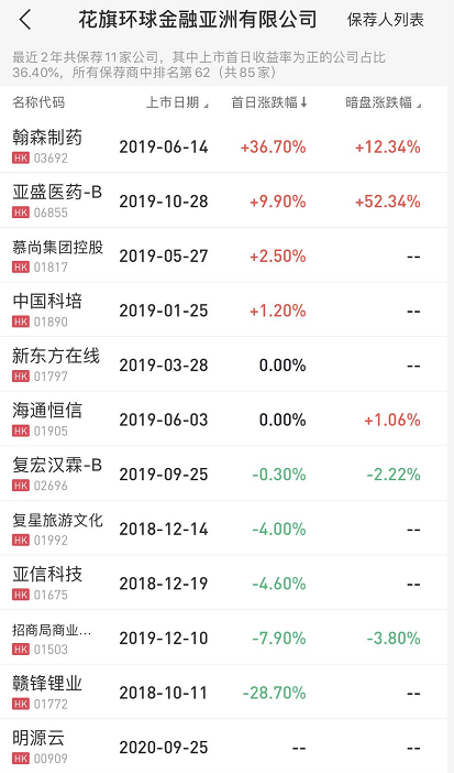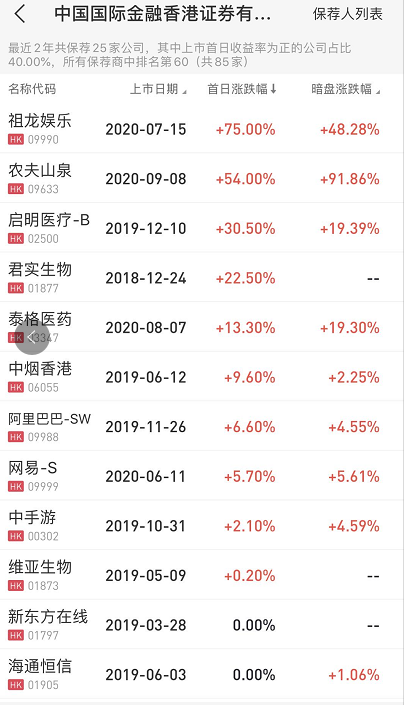 本次明源云保荐的券商分别是中金和花旗,从近两年数据来看,中金共保荐25家公司,上市首日收益为正的概率占比40%;而花旗共保荐11家公司,上市首日收益为正的概率为36.4%。