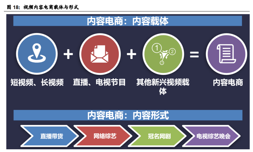 抖音利用自身媒介平台属性和强运营优势,以短视频广告营销为核心,配合直播带货,为商家提供常态化内容营销和直播去库存的组合服务; 2020 年抖音发力搭建自有电商体系,限制外部电商平台,加速形成自有电商生态闭环。