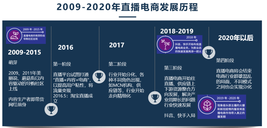 2016年5月,淘宝直播正式成立。9月,京东正式推出直播业务。电商行业开始直播大潮,因此2016年也被认为直播电商元年。