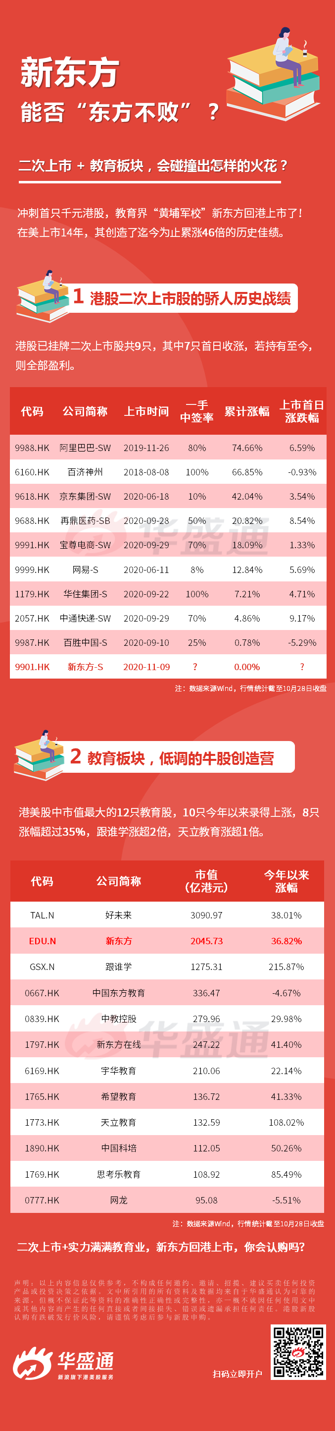 2006年在美股上市的新东方,至今股价已累涨超46倍,此次回港IPO,有市场消息称,其国际配售已获多倍认购。