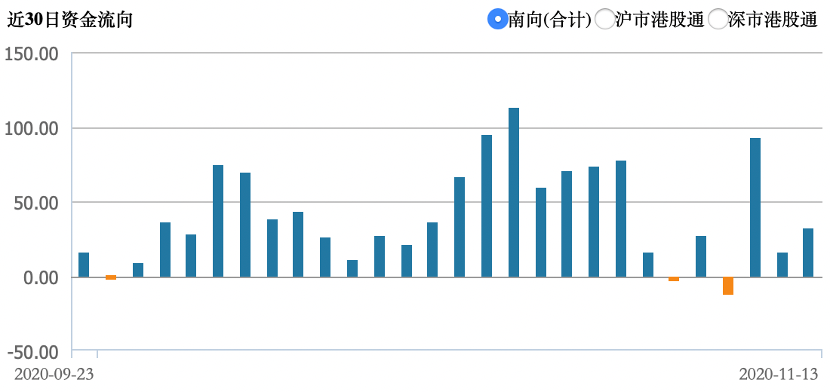 南下资金净流入港股156亿港元,环比减少近80亿;