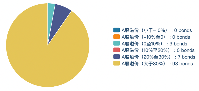 本周共有93只A股溢价超过30%,有10只A股溢价在10%-30%之间。
