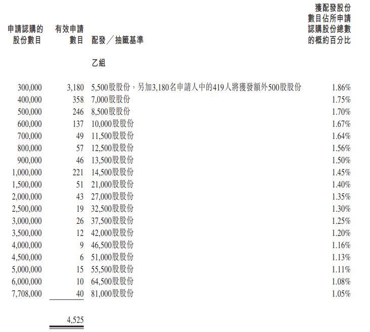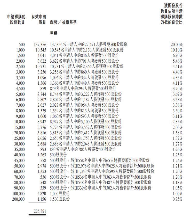 公开发售一手中签率20%,申购80手稳获一手,乙头获配11或12手。
