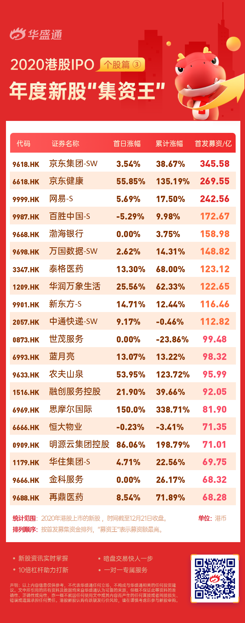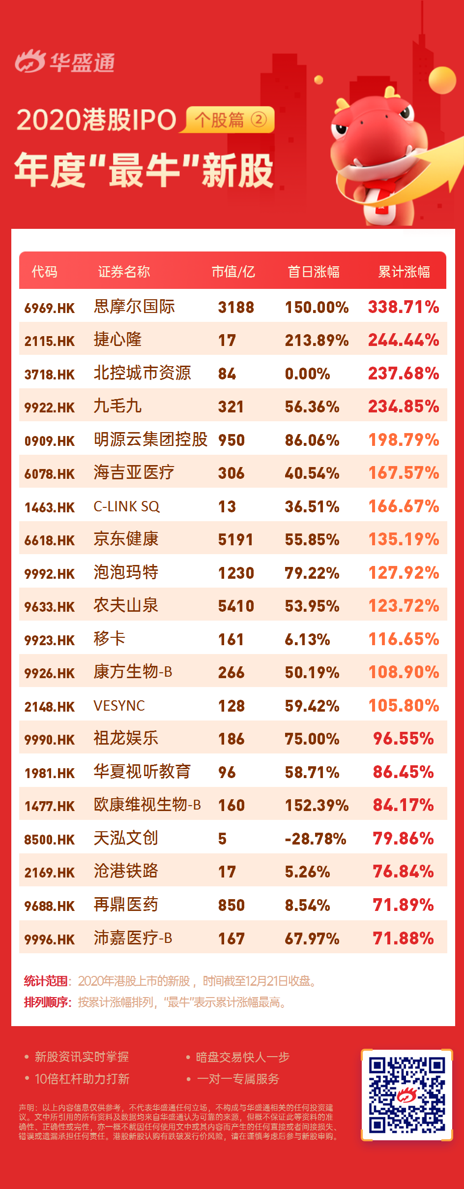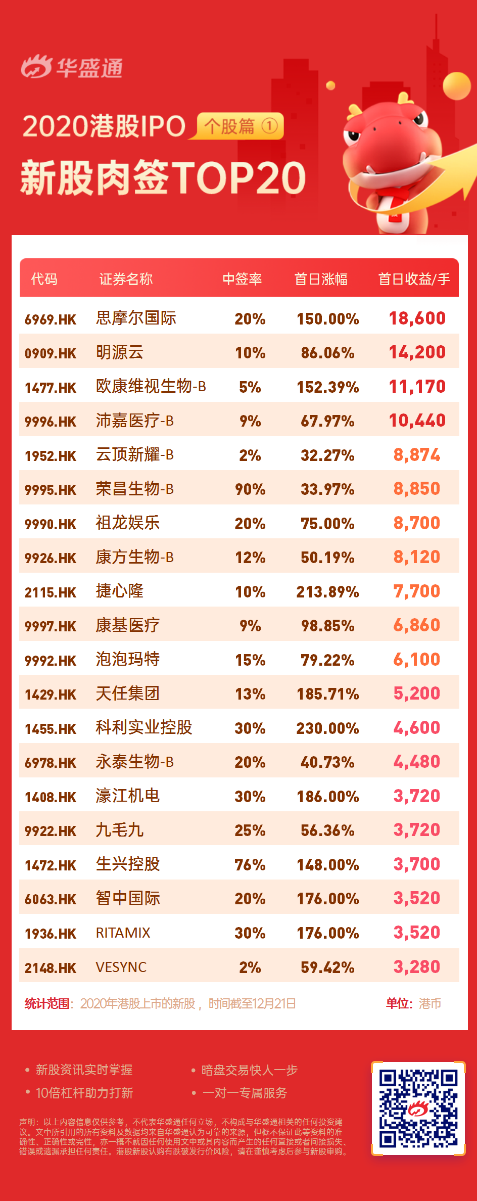 本篇主题为“拍断大腿”系列,华盛资讯盘点了2020年IPO市场,“首日卖出收益最高”、“上市以来表现最牛”以及“年度募资规模最大”的前20支新股。