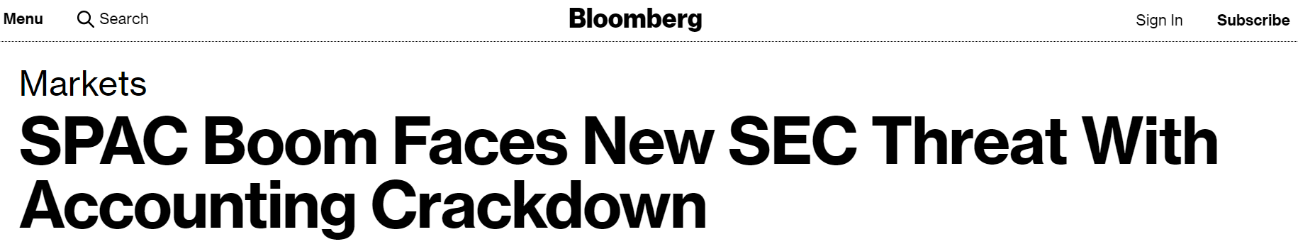 据彭博报道,美国证券交易委员会(SEC)上周开始私下告知会计师事务所,将改变会计准则对SPAC的适用方式,向早期投资者发行的权证可能将不被视为股权工具,而被视为负债;如果无法解决有关认股权事宜,相关上市申请将不被考虑。目前SEC的最终决定暂未公开。