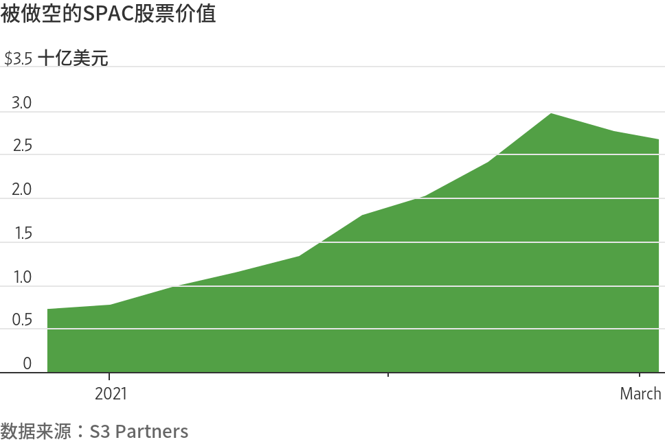 值得注意的是,今年3月以来,SPAC企业也遭到了越来越多的做空。S3 Partners的最新数据显示,截至3月中旬,今年以来针对SPAC的做空押注规模已从7.24亿美元上升至27亿美元。