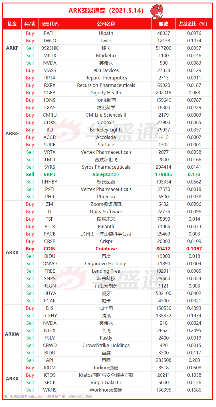 ARK 5月14日(上周五)共交易49笔,买入23笔,卖出26笔。