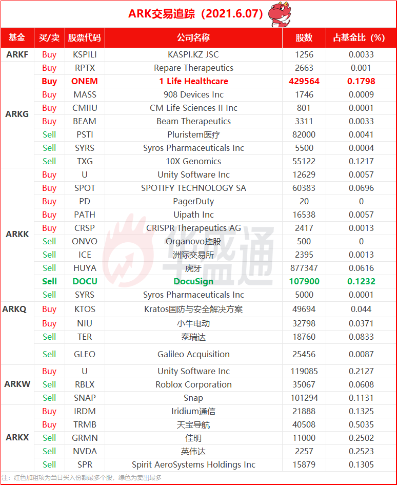 ARK 6月7日共交易31笔,买入16笔,卖出15笔,具体交易如下: