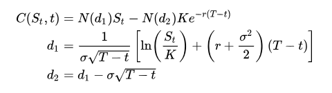 N(·)是标准正态分布的密度函数,T-t 是到期时间,S 是标的股票现价,K 是行权价,r是无风险利率。