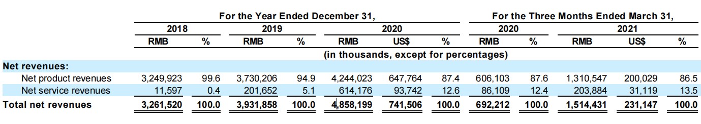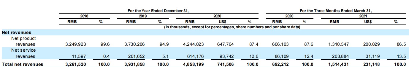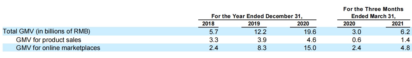 平台服务收入是公司的重要增长点。据招股书,2020年公司的平台服务收入为6.14亿元,同比增长超200%,2018-2020年的年复合平均增速达627.7%,占平台收入的比例也自0.4%一路蹿升至12.6%,单看2020Q2-2021Q1四个季度的收入增速分别为650%、167%、88%、137%就可见集团的平台效应。