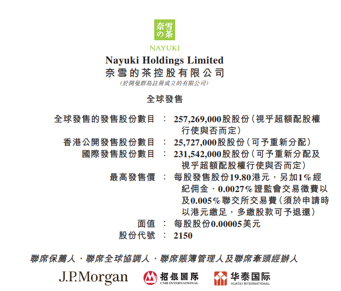 - IPO保荐人摩根大通、招银国际及华泰金融