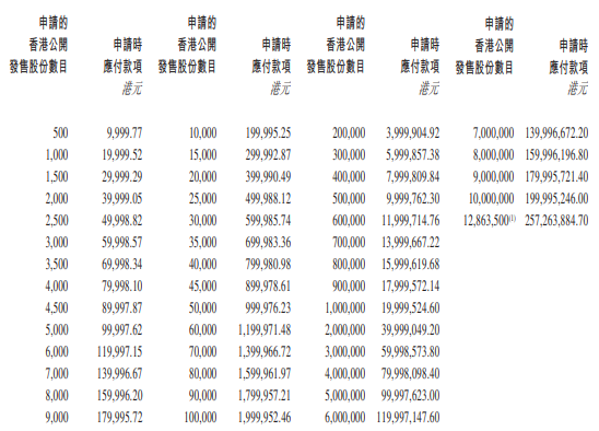 - 每股17.2-19.8港元,每手买卖单位500股,入场费9999.8港元