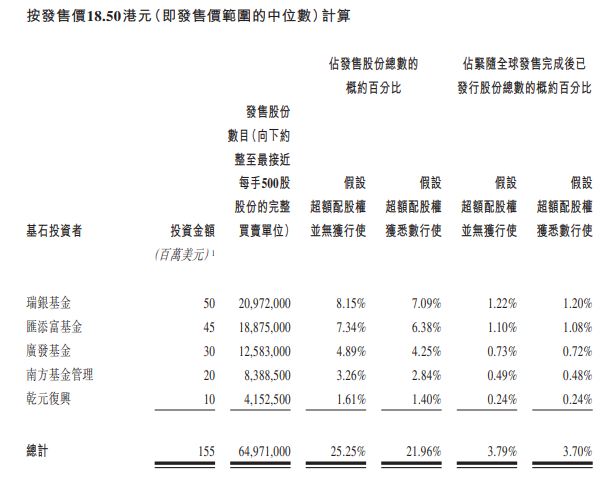 基石投资者包括瑞银基金、汇添富基金、广发基金、南方基金管理、乾元复兴。