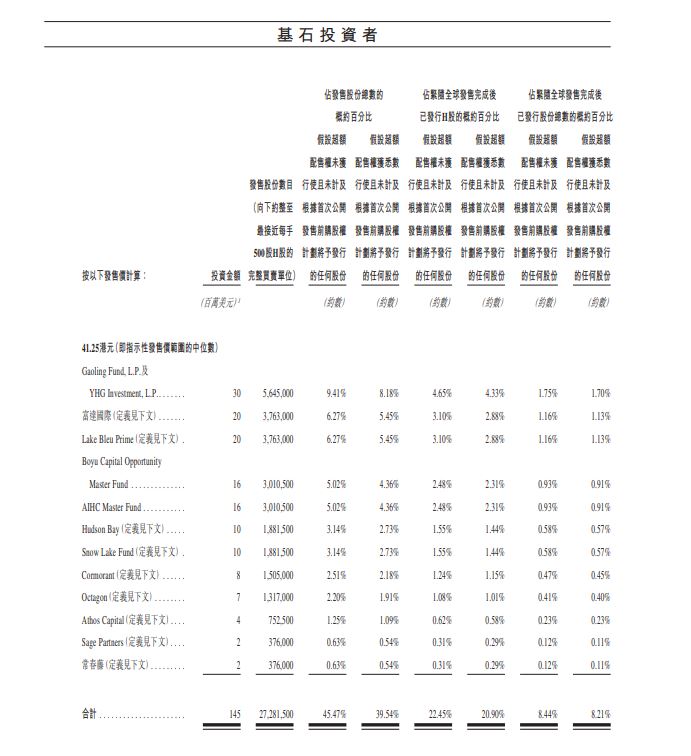基石投资者: