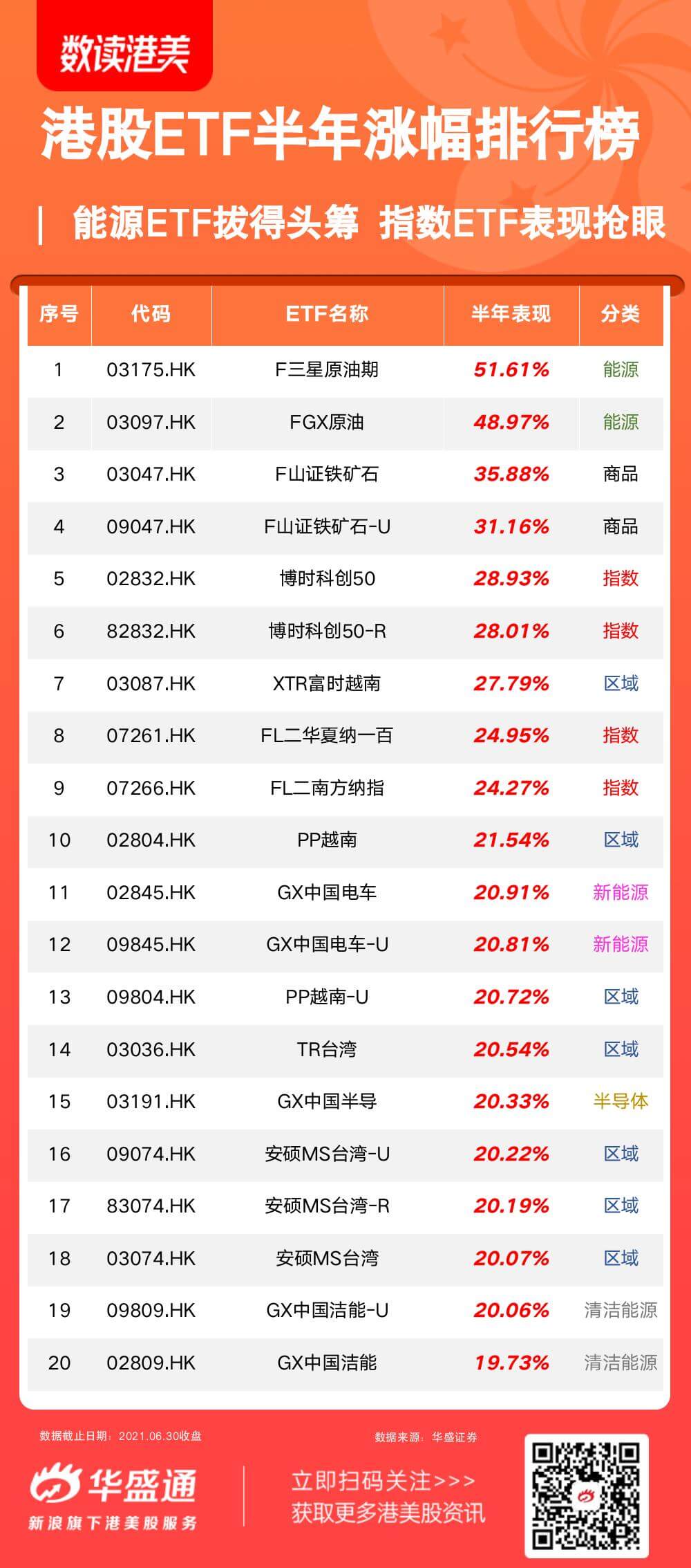 2021年飞快过半,港美股市场ETF半年成绩单火速揭晓!这半年里,美股ETF市场中,做多能源类ETF成最大赢家,强势占领涨幅榜前20名中的13个席位。港股ETF市场中,同样与能源相关的ETF,F三星原油期(03175.HK)问鼎涨幅榜。 话不多说,让我们来看看,究竟是哪些ETF领跑市场呢~