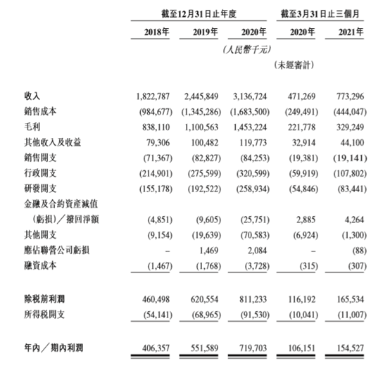 公司2018-2020分别营收18.2亿、24.5亿、31.4亿人民币,复合年增长率为31.2%,净利润为4.06亿、5.52亿、7.20亿元,复合年增长率为33.1%。