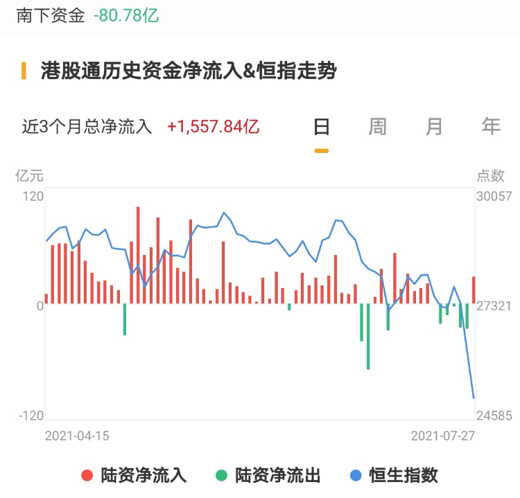 南下资金今日净流出港股80.78亿港元,昨日净流入27.87亿港元。