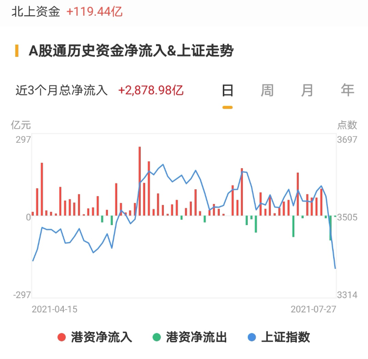 北上资金今日净流入119.44亿元,昨日净流出5.21亿元。