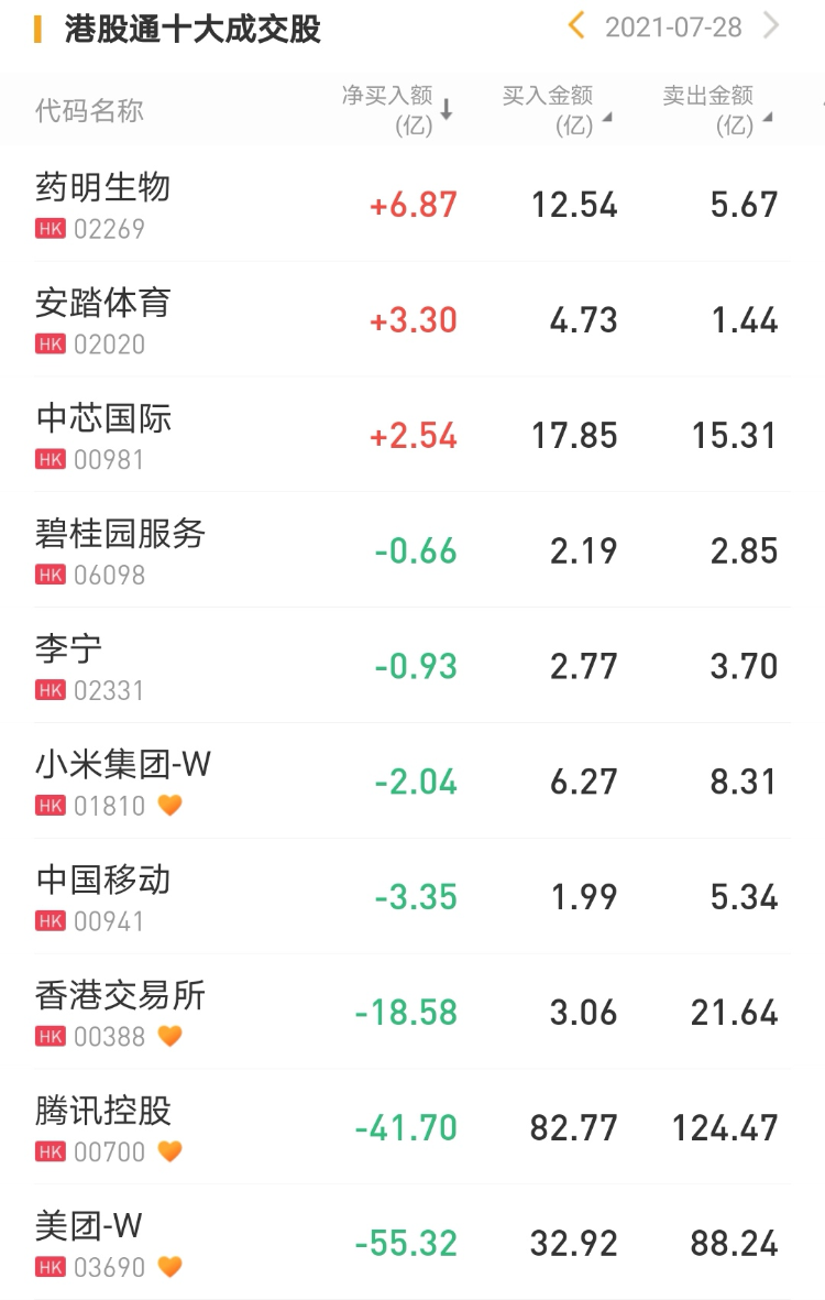 今日南下资金净卖出美团55.32亿港元,为今日抛售之最。此外,南下资金净卖出腾讯控股41.70亿港元。