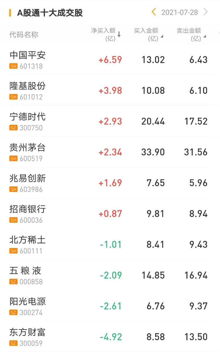 北上资金今日净买入中国平安6.59亿元,为今日买入之最。