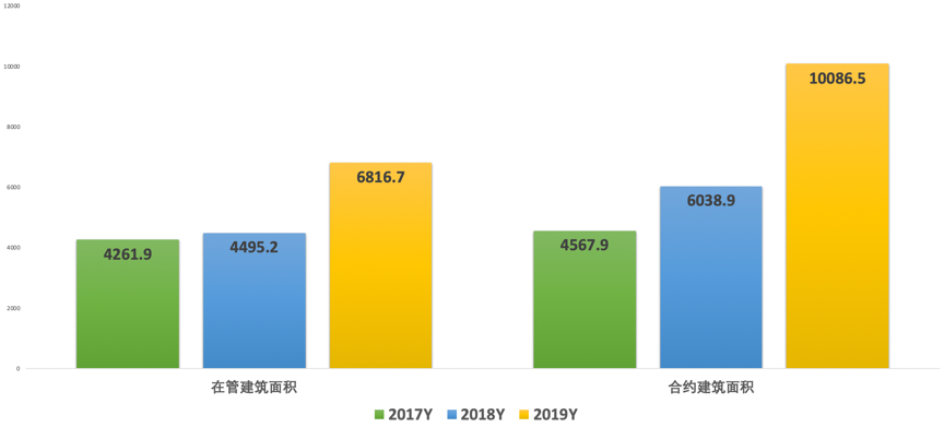 得益于母公司世茂集团的大规模并购和多元化经营,世茂服务的在管建筑面积、合约建筑面积都在高速增长之中。2019年,公司在管建筑面积达到6816.7万平方米,合约建筑面积达到1亿平方米,均较2017年有显著增长。