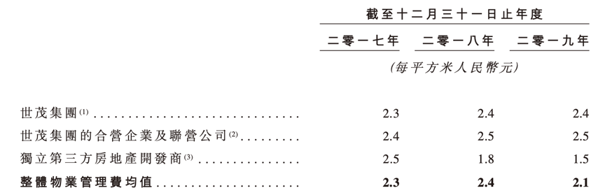 此外,影响公司核心利润的物业管理费在3年来有所下降,整体物业管理费均值从2017年的2.3元每平方米下降至2020年的2.1元每平方米,原因与独立第三方房地产开发商签订的物业管理费下滑较大有关。