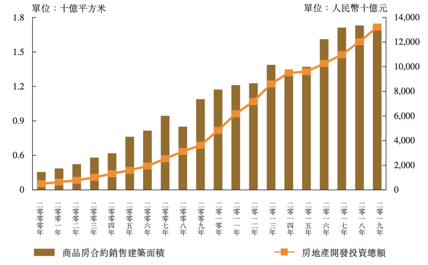 根据中指院资料,受经济高速发展、货币政策偏向宽松以及强劲需求的驱动,中国住宅房地产市场于过往20年经历了高速发展。2019年,商品房的合约销售建筑面积达到17亿平方米,为2009年的9.2倍,复合年增长率为7.5%。
