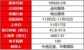 继近日的世茂服务和合景悠活后,又一只物业股即将登陆香港市场,6月29日金科智慧服务集团递表,10月28日便通过聆讯,并于11月5日-11月10日招股,中信证券和华泰国际担任独家保荐人,这是继世茂服务后又一只规模大、增速快的物业股。