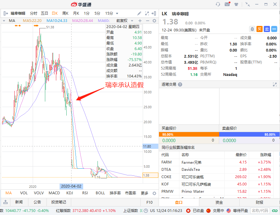 瑞幸咖啡4月2日晚间在公告中自曝,公司 COO 刘剑及部分员工涉嫌伪造 22 亿元销售额,使瑞幸咖啡股价大跌 76%,交易中触发 6 次熔断,350 亿市值蒸发。