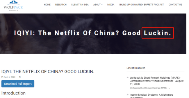 瑞幸咖啡自曝22亿财务造假,似乎启动了多米诺骨牌效应,做空瑞幸后,浑水配合Wolfpack Research做空了另一个中概股——爱奇艺。4月7日,Wolfpack Research发布针对爱奇艺的做空报告,称爱奇艺在2018年上市之前就存在造假行为,且上市后持续造假。