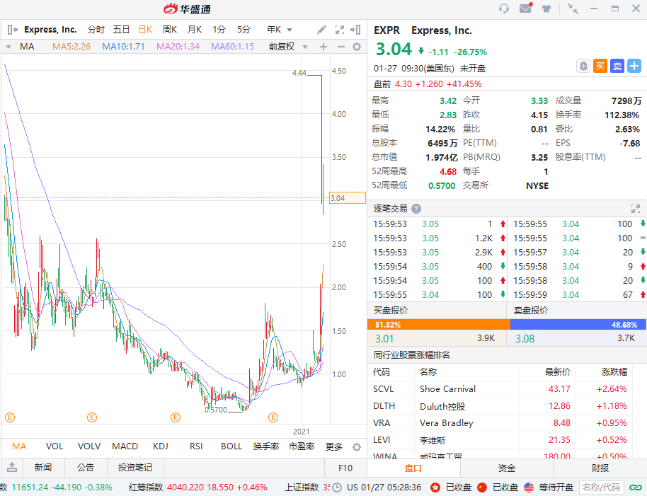 三、社交平台捧出的妖股:服装零售商Express Inc (NYSE:EXPR)