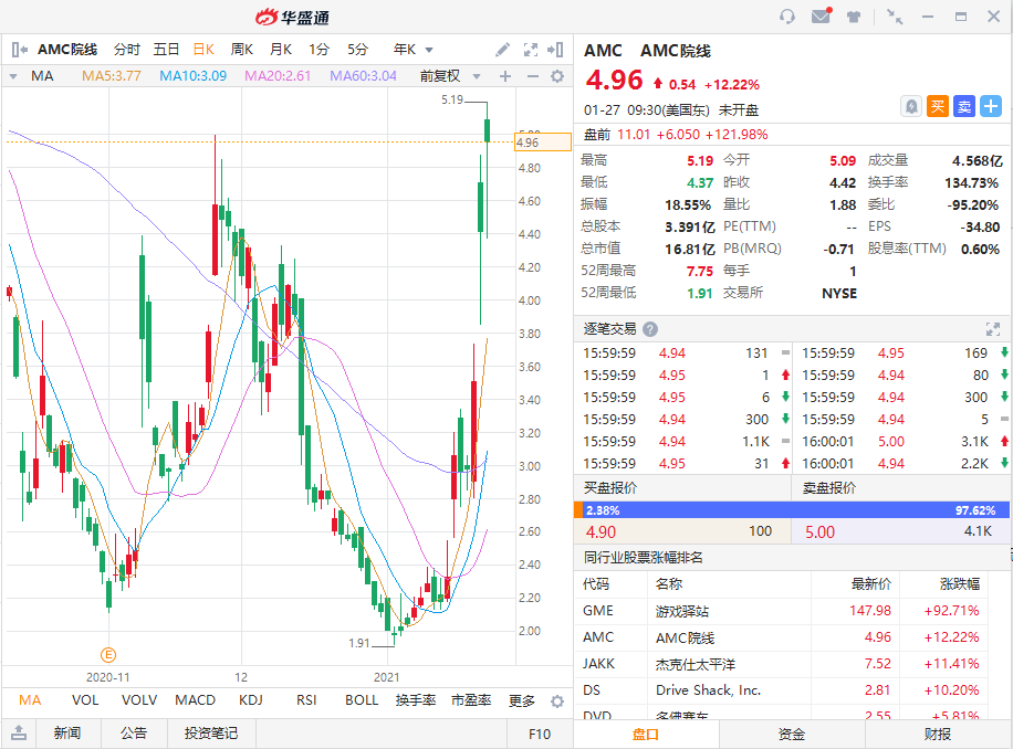 四、有望成为下一个游戏驿站:盘前涨超120%的AMC院线