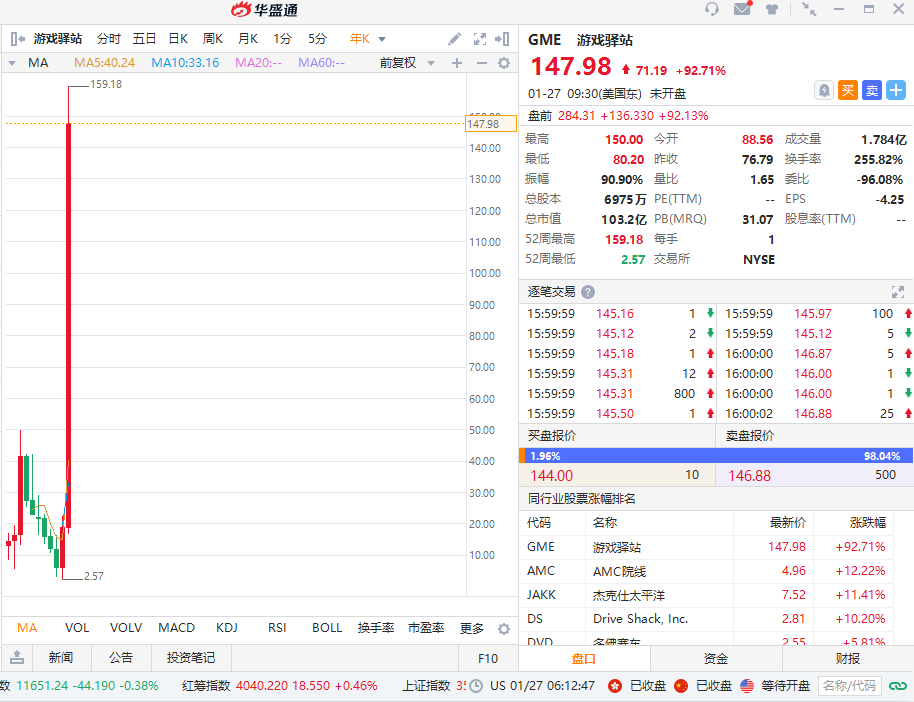 针对游戏驿站的暴涨,彭博援引Loup Ventures联合创始人Doug Clinton表示,“这在商业上没有意义。从投资者心理角度来看,是有道理的。我认为,在愿意付出多少钱的方面,散户投资者与机构投资者不同。”