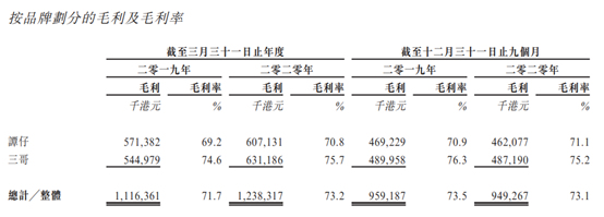 谭仔的毛利率高达73.2%,为港快餐上市企业大家乐、大快活、太兴、翠华中最高。