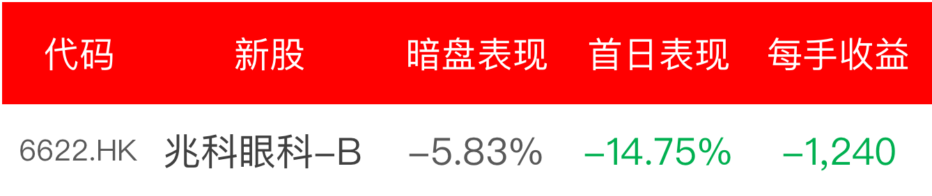 1.大热“B”类股破发 兆科眼科上市首日跌14.8%