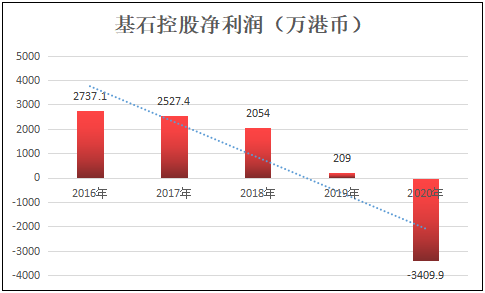 那么股价如此强劲是不是因为业绩飙升呢?我们翻看公司过往业绩表现,发现二者其实是互相矛盾的。公司自2016年后,业绩一年不如一年,2020年更是由盈转亏至3409.9万港币。很明显,股价并没有业绩的支撑。