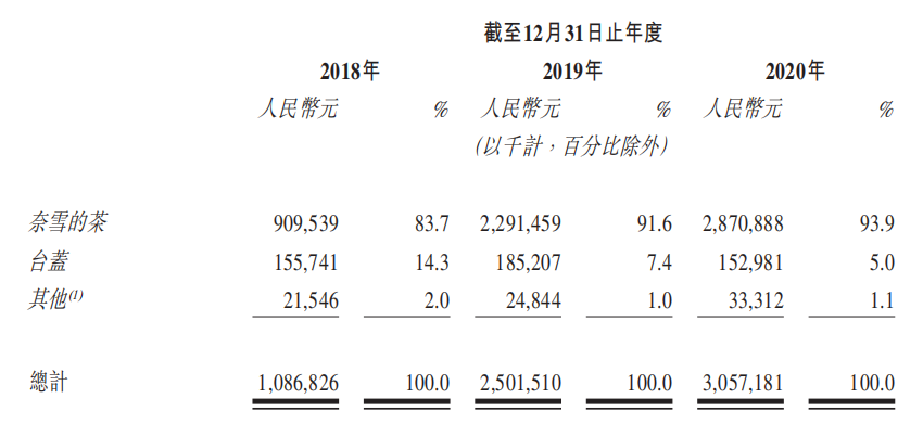2018-2019年,奈雪占集团总营收比重分别为83.7%,91.6%。截止至2020年,奈雪占集团总营收比重进一步上升至93.9%,占绝大比例。